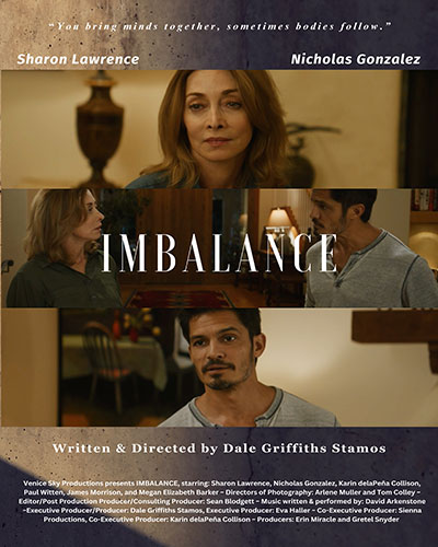After many years, six short films, and over seventy film festival acceptances, Dale has written, produced and directed her first feature length film IMBALANCE which stars 6-time Emmy nominee and SAG Award-winner Sharon Lawrence, and co-stars Nicholas Gonzalez, from the hit television shows, The Good Doctor and La Brea. The film was also produced by Erin Miracle and Gretel Snyder, and her consulting producer, editor and postproduction producer is Sean Blodgett. Dale also is executive producer, along with executive producer Eva Haller. Music is by 5-time Grammy nominee, David Arkenstone.